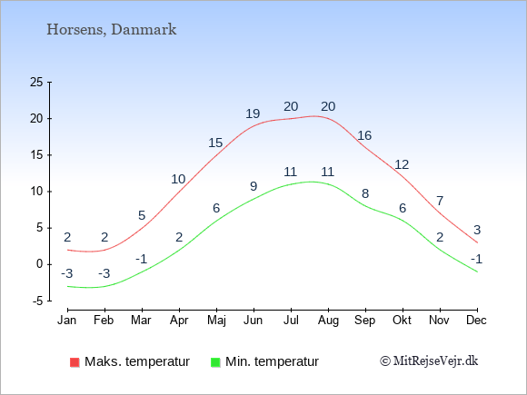 Data Tabeller Og Diagrammer Manedlige Og Arlige Klimaforhold I Horsens Danmark